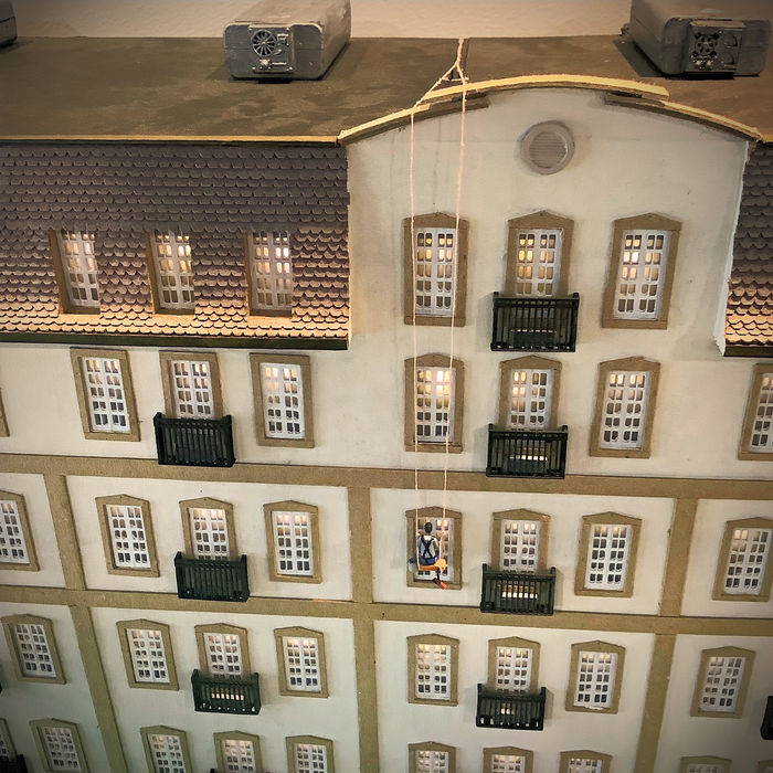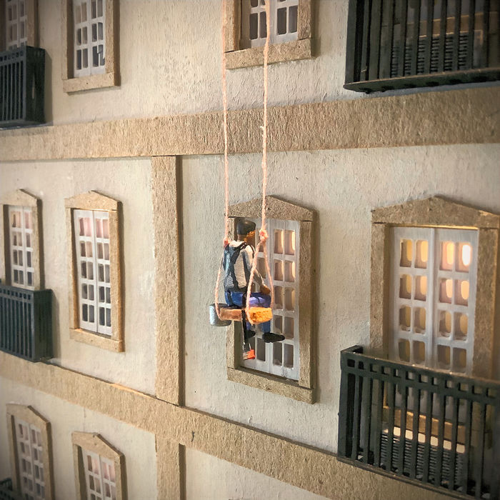 The addition of a window washer adds some levity to the model as various figures are fascinated by his work, including Roscoe, a neighbourhood dog.