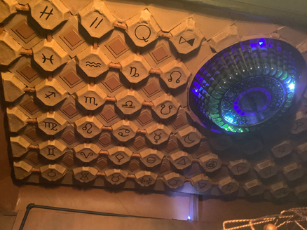 Cardboard; Chipboard; 3D Resin Prints; Found Objects; Multi-strand LED string lighting